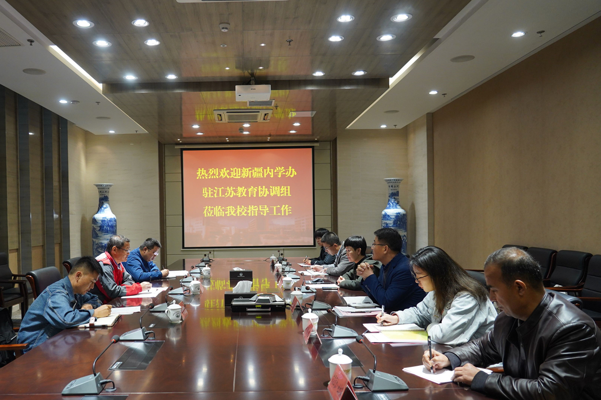 4月26日上午,江苏省教育厅办公室副主任、新疆内学办驻江苏教育协调组组长张雨明一行来我校专程调研新疆籍学生管理工作。党委副书记梁惠主持会议,学工处、保卫处负责人以及学工处主要负责民族生服务管理工作的老师参加调研。