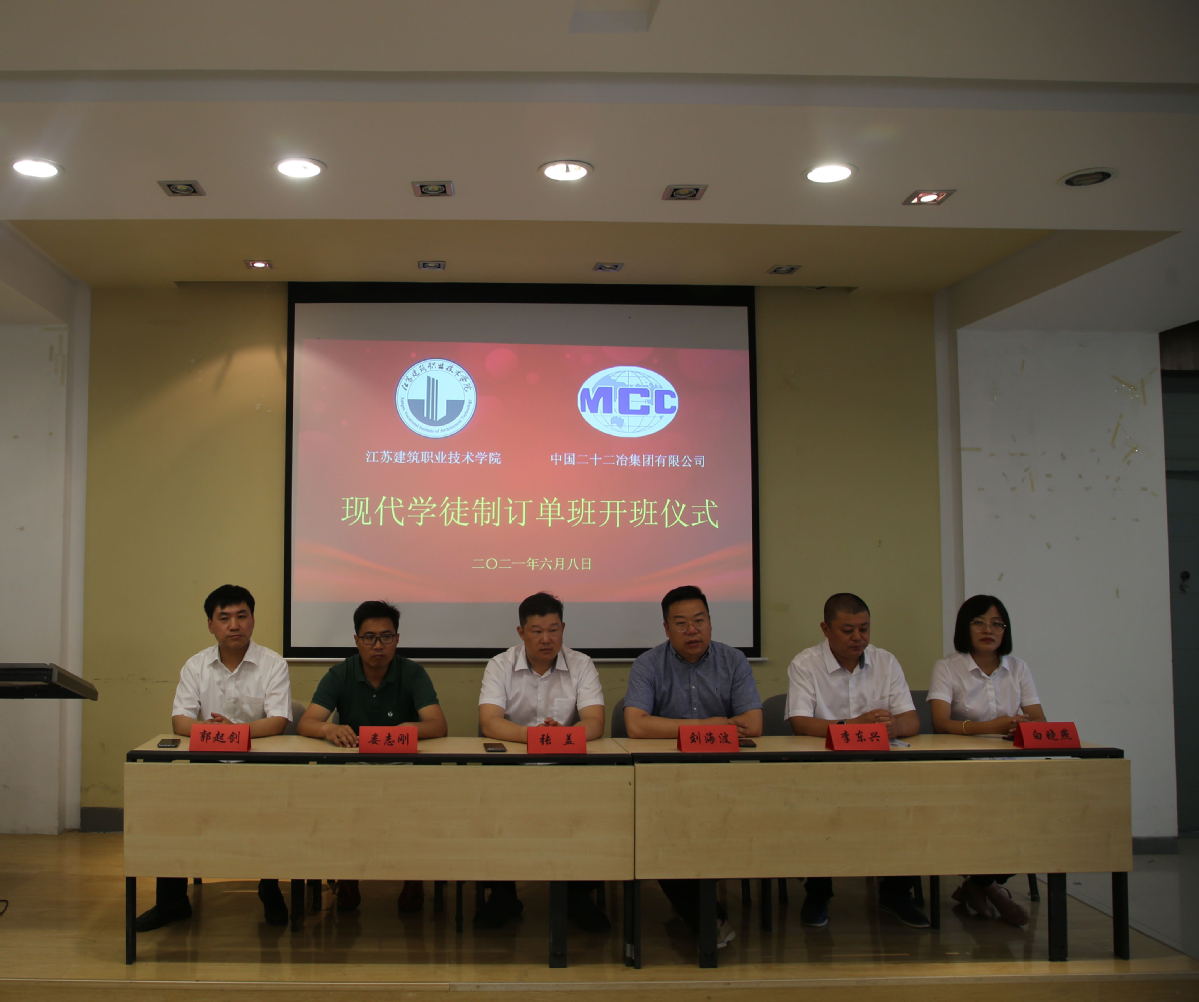 6月8日下午,我校与中国二十二冶集团有限公司首届现代学徒制订单班开班仪式在利亚楼举行。副院长刘海波,二十二冶集团江苏分公司总经理张盖、副总经理李东兴,校企合作处及相关部门负责人,首届订单班43名学生参加了开班仪式。