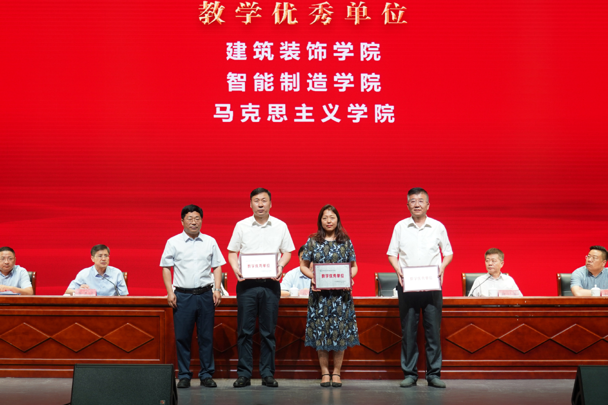魏勇宣读表彰决定。大会为国家级、省级高水平专业群授牌,为教学优秀单位、优秀教研室颁发奖牌,为教学优秀个人代表颁发荣誉证书。