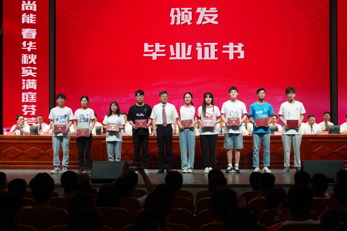 魏勇宣读《关于准予2021届4395名学生毕(结)业的决定》。曾凡远为毕业生代表颁发毕业证书。刘海波为留学生代表颁发毕业证书。蒋兆峰宣读《省教育厅共青团江苏省委关于表彰2021年度江苏省普通高校省级优秀毕业生的决定》《华体会体育关于表彰2021届优秀毕业生的决定》。