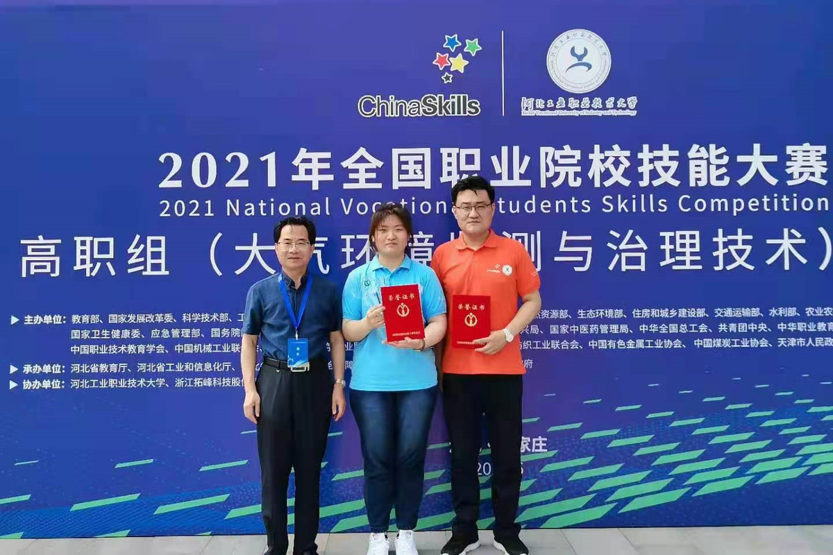 经过激烈角逐,给排19-2班袁芾同学在“环境监测与治理技术”赛项中脱颖而出,荣获一等奖第一名,指导老师孙悦荣获全国职业院校技能大赛优秀指导老师。由装饰18-4班许妍同学和装饰18-5班孙玉环同学组成的代表队在“建筑装饰技术应用”赛项中获二等奖。由城轨19-2班常进展、城轨19-2班李杰、城轨19-1班常茜源、路桥19-4班孙鑫等同学组成的代表队在“矿井灾害应急救援技术”赛项中荣获二等奖。