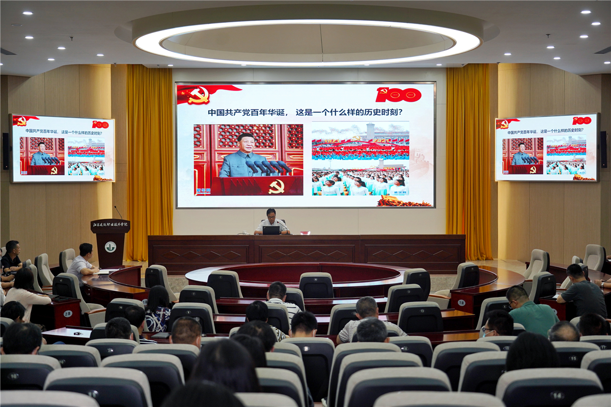 根据党史学习教育安排,为进一步深入学习贯彻习近平总书记“七一”重要讲话精神,9月17日下午,习近平总书记在庆祝中国共产党成立100周年大会上的重要讲话精神专题宣讲会在学术报告厅举行。徐州市委宣讲团成员、校党委书记孙进教授以《从党的历史中汲取智慧和力量》为题,为机关党总支和马克思主义学院党支部全体教职工作专题报告。