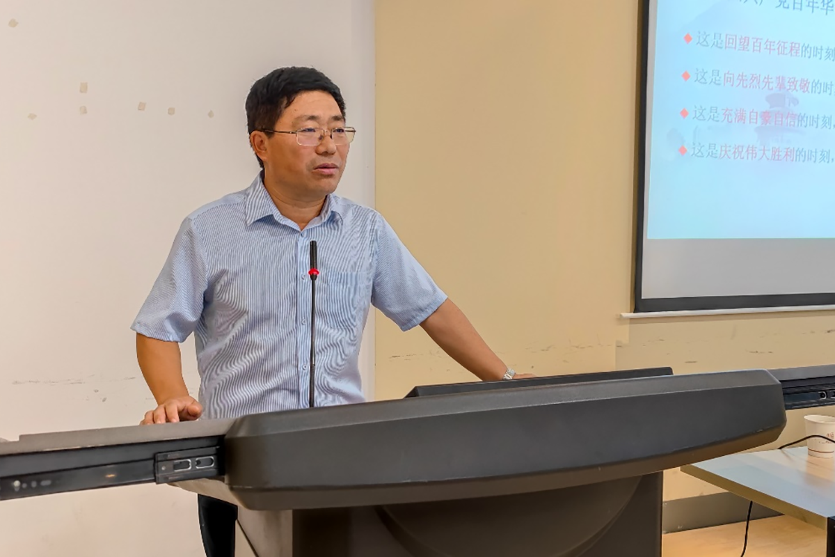 沈士德以《铭记历史 开创未来 向着第二个百年奋斗目标继续前行》为题,从习近平总书记“七一”重要讲话的逻辑结构和主要内容、深入学习领会习近平总书记重要讲话提出的一系列新思想、新观点和新要求和如何践行党中央的号召、走好新的赶考路三个方面,对习近平总书记“七一”重要讲话精神做了深入浅出的讲解。