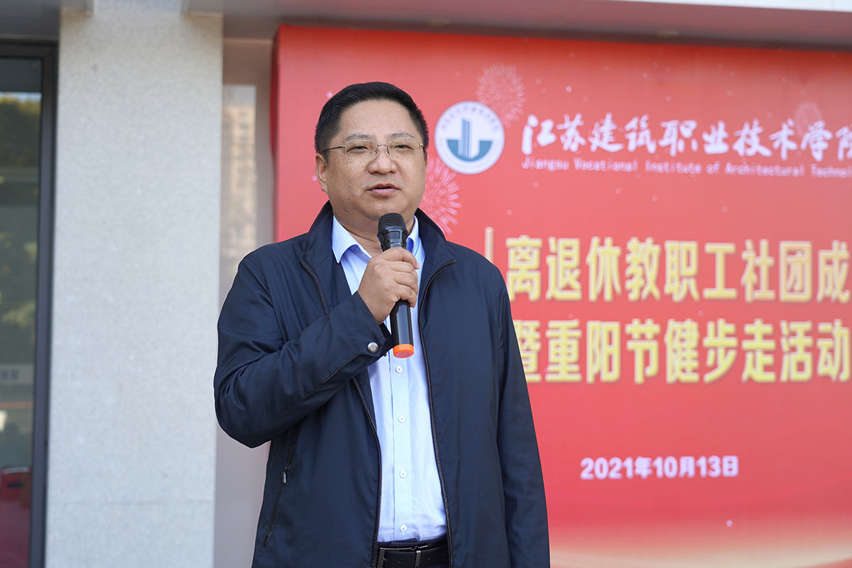 10月13日上午,重阳节到来之际,我校举办离退休教职工社团成立大会暨重阳节健步走活动。副院长蒋兆峰、在徐高校老年人体育协会副会长任留钦和全校150余名离退休老同志参加活动。