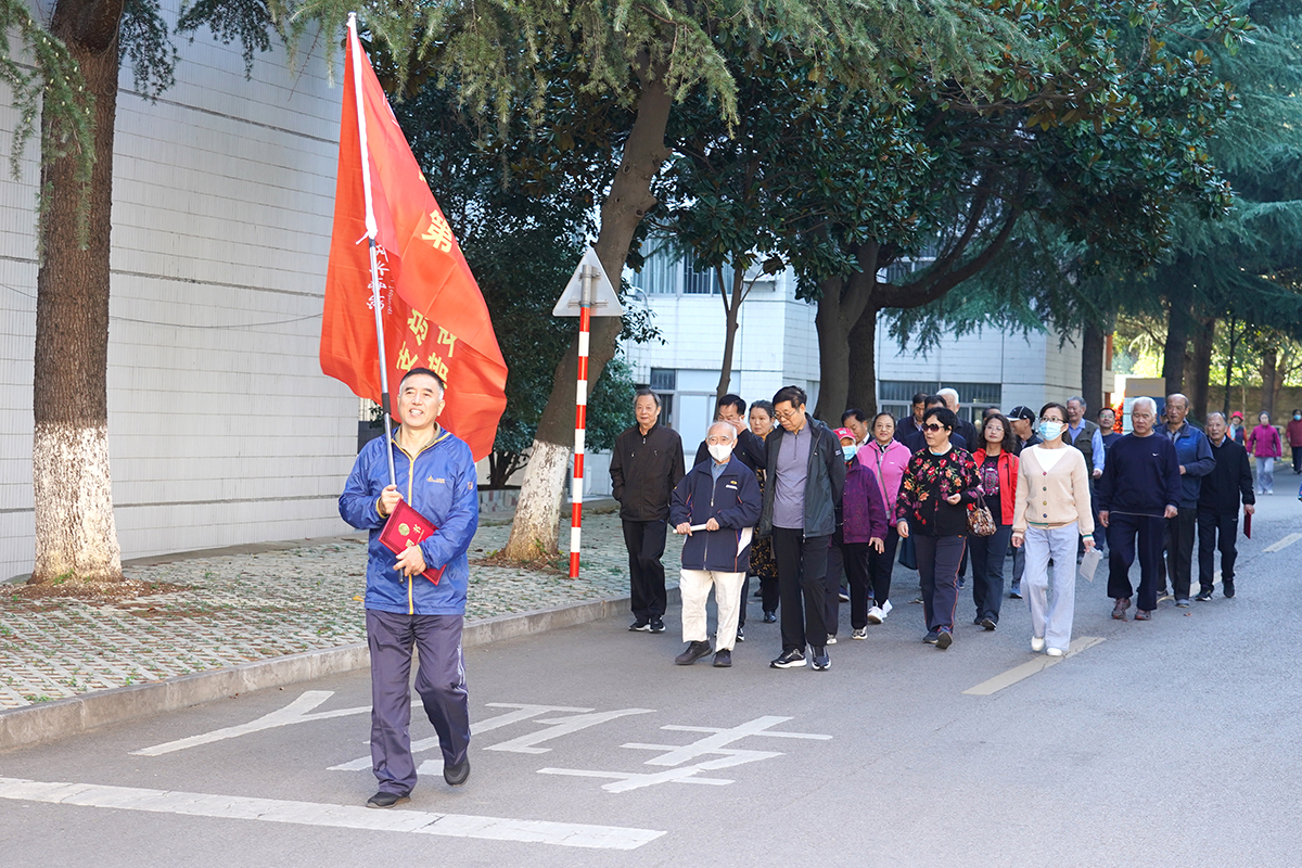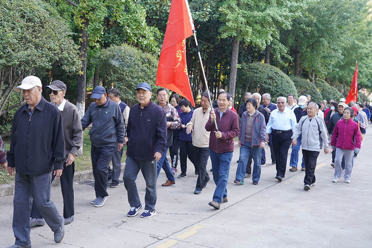 会后,老同志们以支部为单位进行了绕行东校区一周的健步走活动。