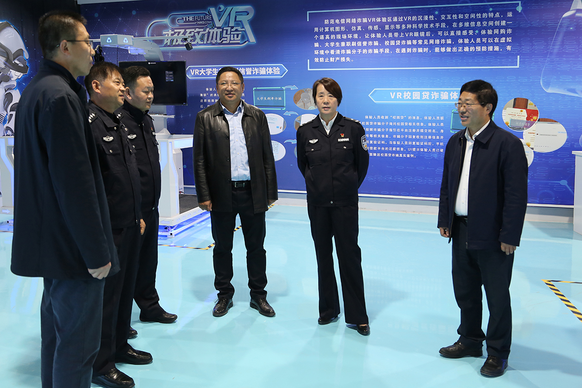 调研人员听取了学校防范电信网络诈骗工作开展情况汇报,参观了学校防范电信网络体验中心。刘丽涛等对我校利用VR等技术手段开展反诈宣传的创新做法给予了肯定,并对深入开展“警校携手共建无诈校园”工作提出了合理化建议。