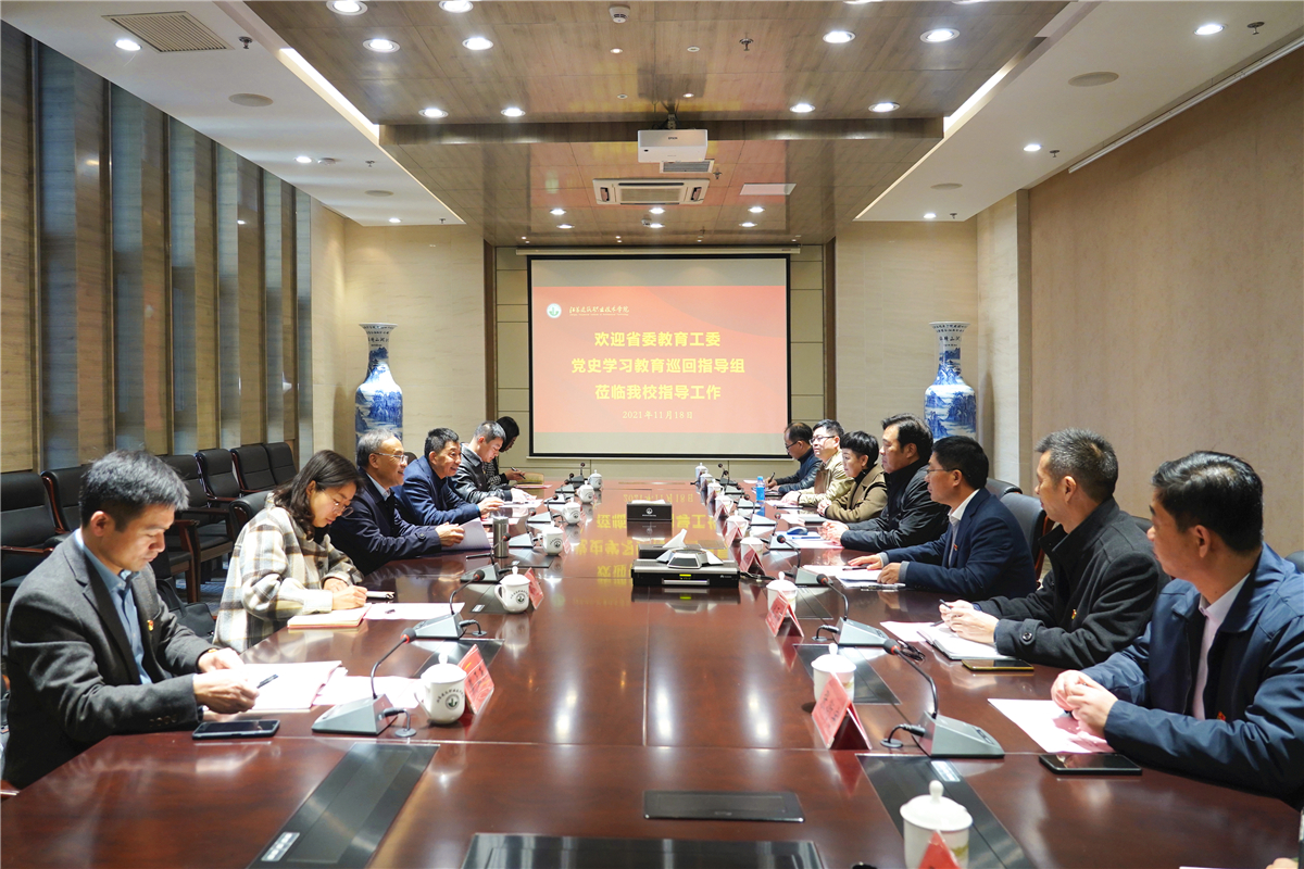 11月18日上午,省委教育工委党史学习教育第六巡回指导组来校调研指导工作。指导组通过听取工作汇报、查阅材料、现场调研等方式对我校近期党史学习教育情况进行督导。第六指导组组长、江苏理工学院原党委书记王建华,第六指导组副组长、苏州农业职业技术学院原党委书记李振陆,指导组全体成员,我校党委书记孙进教授、院长沈士德教授、党委副书记梁惠以及学校党史学习教育领导小组各组长参加会议。