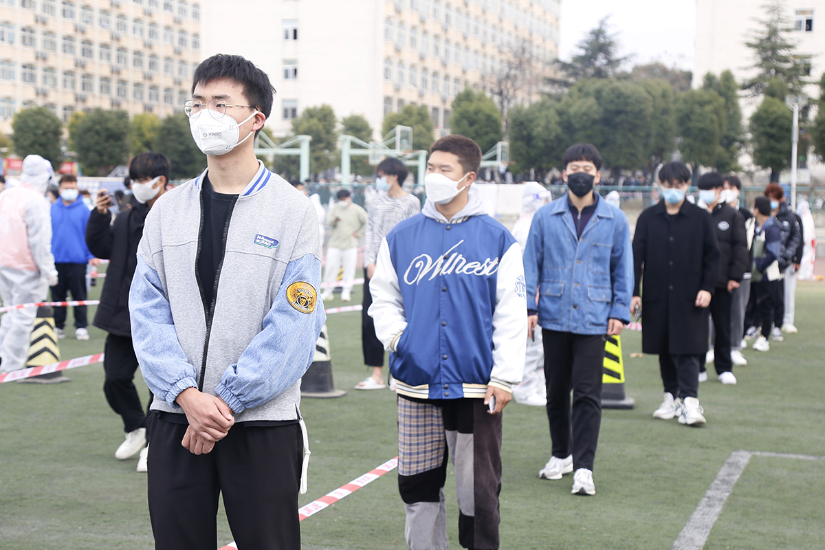 接到全员核酸检测通知后,在党委高度重视、统一部署下,学校疫情防控工作领导小组在第一时间内安排好路线规划、人员调度、现场协调、志愿服务等环节,齐心协力共克时艰。在学校规定的检测时间内,仅11月28日下午,全体在校师生员工及物业外包人员等15657人,分批错峰到达采样现场,依次在信息登记区完成相关信息录入,由医务人员开展核酸采样,整个过程井然有序,检测流程快速高效。校团委抽调了300名志愿者,参与了50个小组的各环节志愿服务工作。