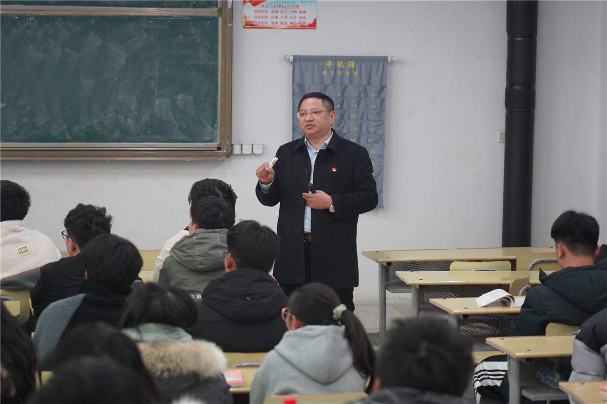 为深入贯彻落实习近平总书记在学校思想政治理论课教师座谈会上的讲话精神与《关于深化新时代学校思想政治理论课改革创新的若干意见》文件要求,充分发挥领导干部示范带动作用,11月23日-12月3日,校党委书记孙进教授,院长沈士德教授,党委副书记梁惠,纪委书记魏勇,副院长曾凡远、刘海波、蒋兆峰先后走进思政课堂,为2021级工程造价、机械设计与制造等专业学生讲授《形势与政策》课程。