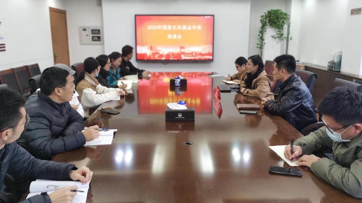 近日,我校2022年国家自然科学基金和国家社科基金申报座谈会在行政楼第一会议室举行。会议特邀江苏师范大学科研院副院长盖宏伟教授、中国矿业大学人文与社会科学处副处长张矛矛教授作客指导。科技处、高等教育研究所等相关单位负责人、校科研骨干教师参加座谈会。会议由科技处处长刘志坚主持。
