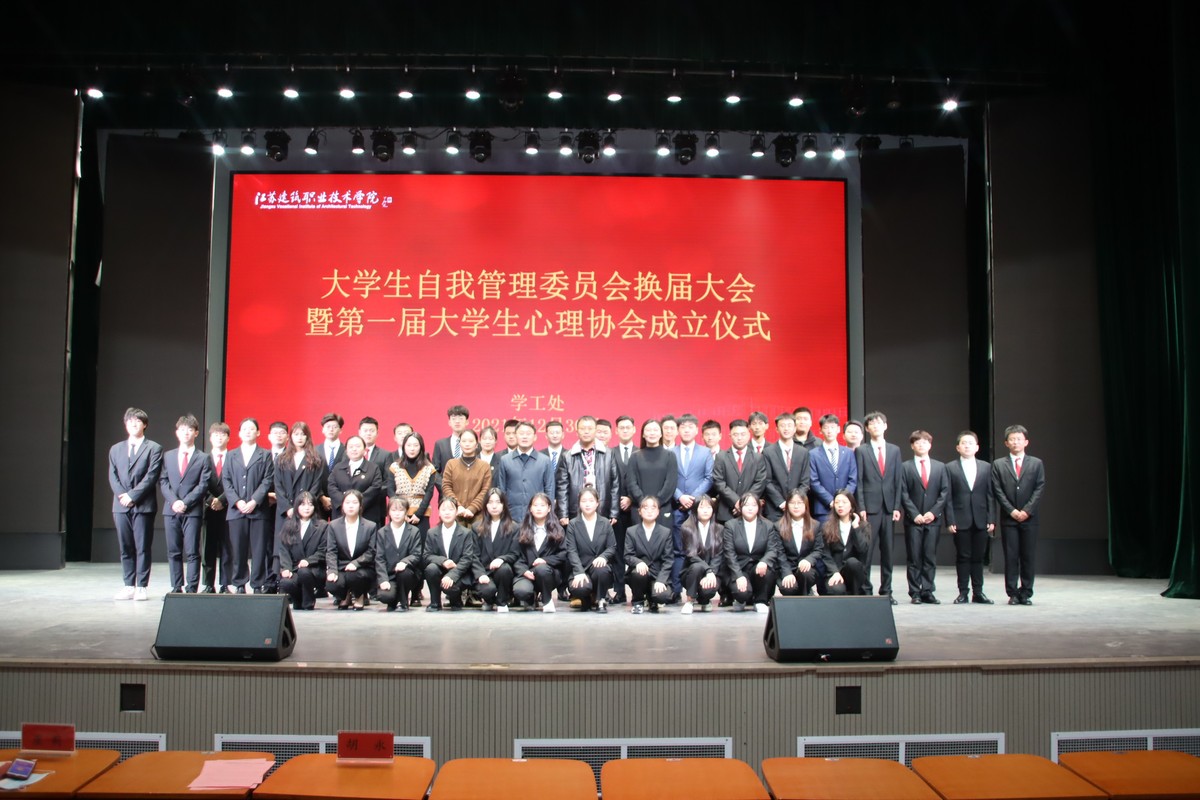 12月30日下午,校大学生自我管理委员会换届大会暨第一届大学生心理协会成立大会在会堂召开,学生工作处、心理健康教育中心等单位负责人,各二级学院辅导员代表、学生干部代表参加会议。