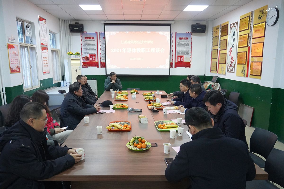 1月5日下午,学校2021年退休教职工座谈会在离退休工作处会议室召开。院长沈士德教授,副院长蒋兆峰,党政办公室、人事处、工会、离退休工作处、妇联等部门负责同志及部分2021年退休教职工代表参加座谈会。会议由蒋兆峰主持。