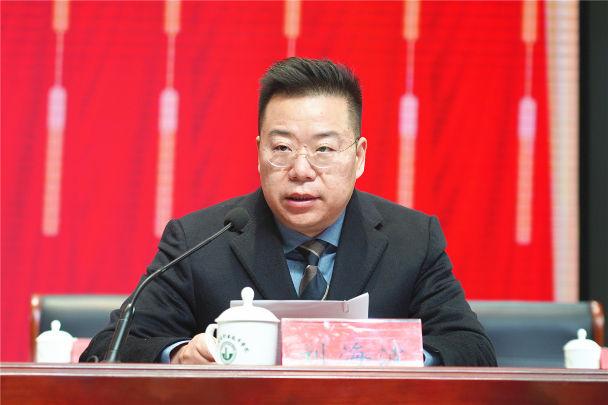 党委书记孙进教授就贯彻会议精神、抓好年度任务和加快学校高质量发展等方面内容谈了三点意见。第一,统一思想,凝聚共识,提振高质量发展“精气神”。他指出,推进学校事业发展的“精气神”,就是要体现在人的精神面貌上、作风状态上和风采形象上。学校“十四五”提出了发展职业本科教育的奋斗目标,责任重大,使命光荣,在干事创业劲头上,全体师生员工要做好传承,持续发挥党的政治优势,强化党建引领作用,筑牢学校高水平建设、高质量发展的动力源泉。第二,守正创新,踔厉不怠,提升高质量发展“加速度”。各级党组织、各单位部门,要进一步解放思想,蓄能加力,坚持创新发展,加快内涵建设,补齐短板,抓牢机遇,扩大优势,提高建设成效,助力提升发展。第三,聚焦聚力,勇担使命,绘就高质量发展“同心圆”。广大领导干部要带领本单位、本部门职工,尽快投入全年工作,以更牢初心勇担使命,以更高政治定力攻坚克难,营造“心往一处想、劲往一处使”的事业氛围,以时不我待的紧迫感、只争朝夕的使命感和奋斗有我的责任感,助力学校高质量发展再上新台阶,以优异的成绩向党的二十大献礼!