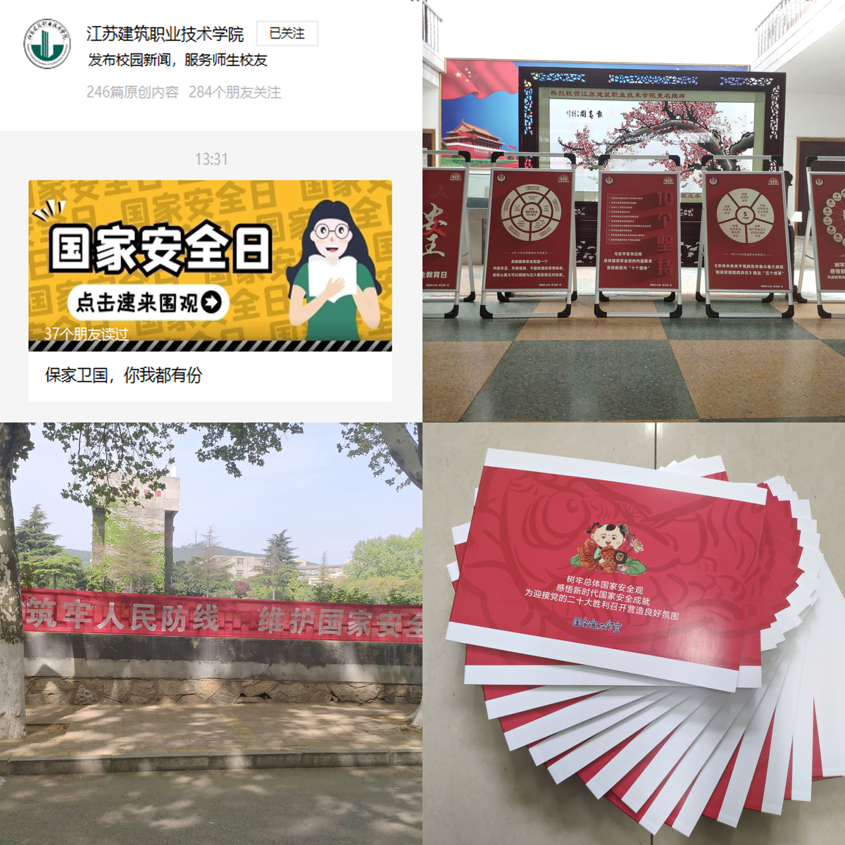 4月15日,第七个全民国家安全教育日,我校按照省教育厅和徐州市国家安全人民防线建设领导小组办公室安排部署,围绕“树牢总体国家安全观,感悟新时代国家安全成就,为迎接党的二十大胜利召开营造良好氛围”主题,开展了全民国家安全教育日宣传教育活动,旨在有效普及国家安全知识、增强师生维护国家安全的能力与意识。