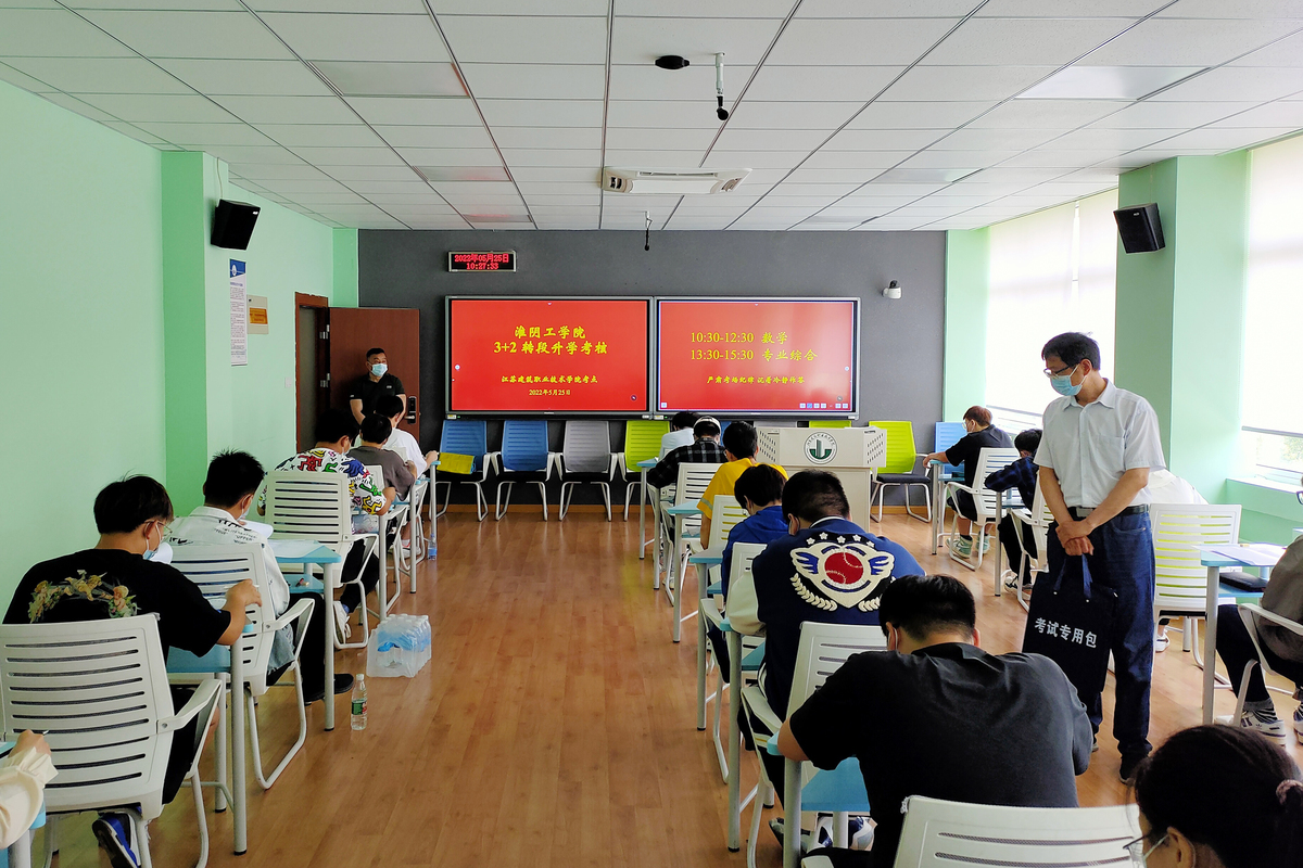 学校高度重视本次考试,专门成立了考试领导小组,具体安排部署考试事宜。监考、巡考等工作人员由我校与淮阴工学院共同选派。因疫情防控需要,学校设置了标准化考场和隔离考场。所有考生在测量体温正常后,凭有效身份证件、核酸检测阴性证明、“两码”绿码入场参加考试。