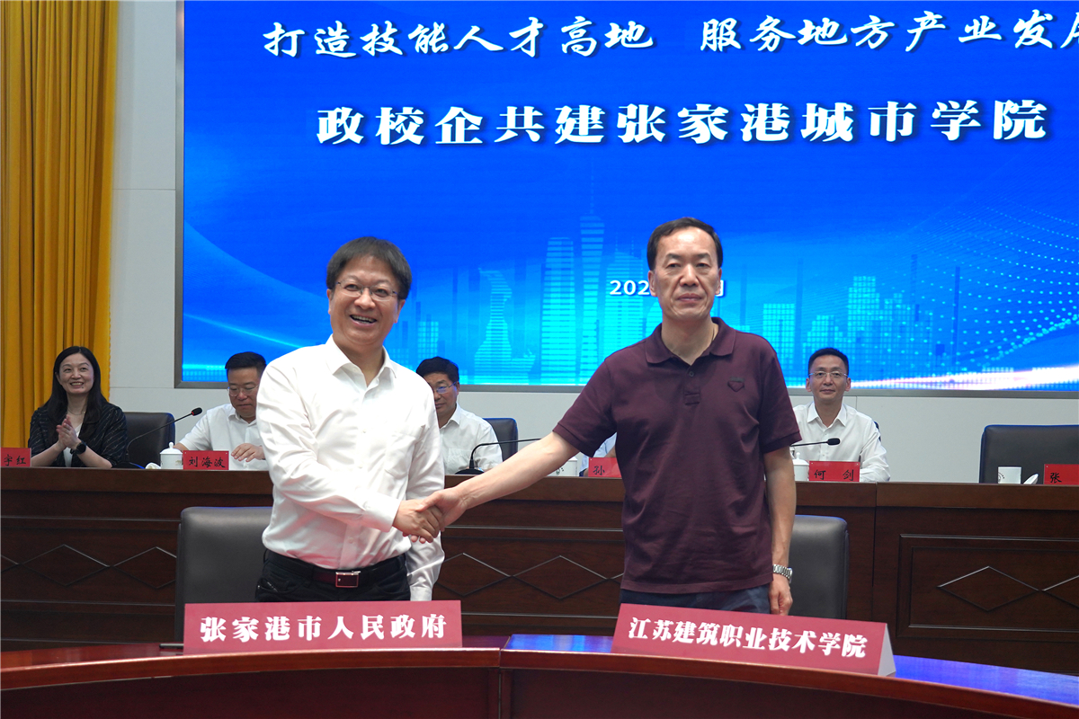何剑在讲话中对我校多年来在产学研合作等方面给予张家港市的大力支持表示感谢,并重点介绍了张家港市八大产业链人才需求、引才政策与举措。他表示,应用型技术人才是张家港市产业转型升级的重要人才支撑,政府部门围绕产业紧缺、企业急需的应用型技能人才引育需求,以城市冠名建立城市学院,有利于推动提升专业技术人才培养水平,加快产业技术研发与科技成果转化效率,促进实现产业转型升级等。江苏建院办学经验丰富,人才培养质量高,专业设置与张家港市需求契合度高。政校企一体推进人才招引和培育工作,有利于实现人才集聚与产业发展“同频共振”。