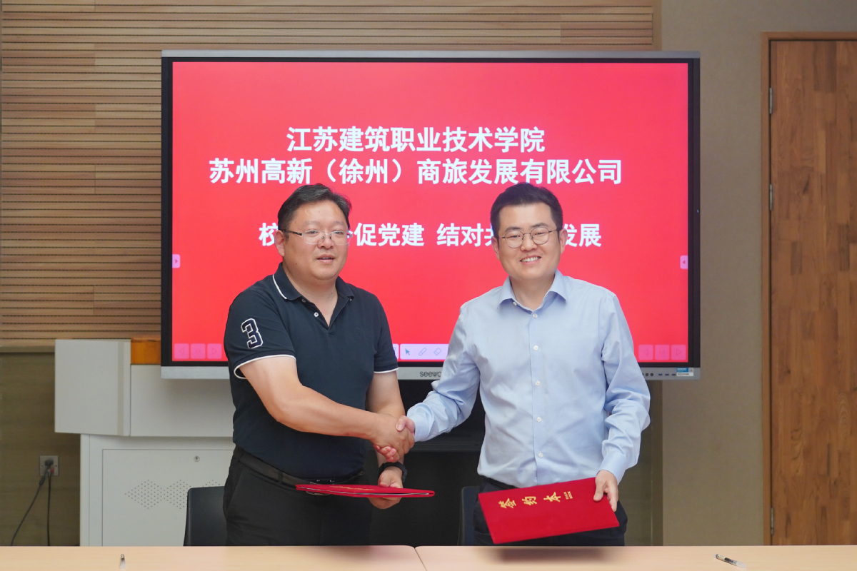 与会人员就基层党组织建设、订单班招生、课程植入、实习就业等进行了深度洽谈,达成初步共识。经济管理学院党总支与苏州高新(徐州)商旅发展有限公司党支部签订了党建共建框架协议。