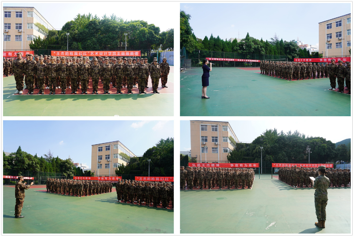 9月2日下午,2021级学生军训期间,艺术设计学院组织全体参训学生,以“王杰的枪我们扛”为主题,在排球场开展了一场主题思政教育活动。徐州市泉山区人民武装部、王杰纪念馆、本次军训承训部队以及我校人民武装部相关负责同志出席活动。