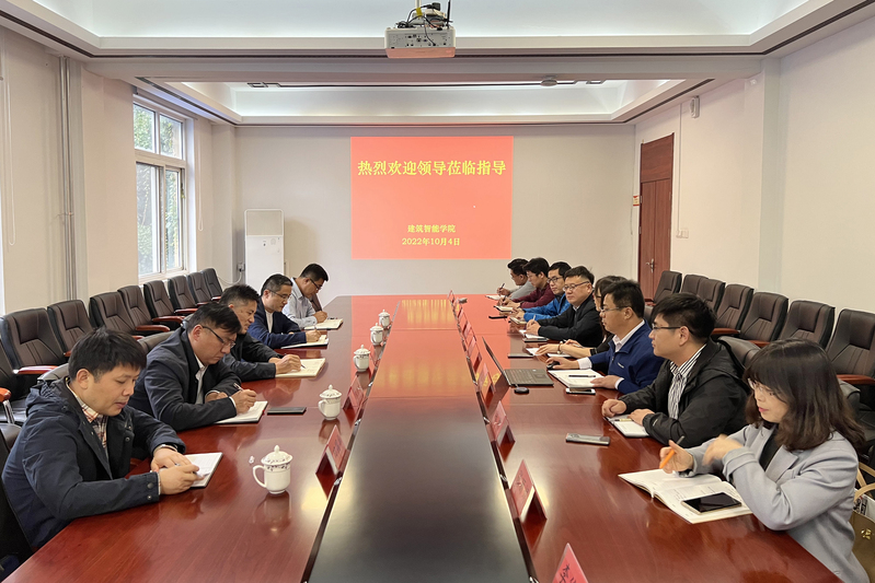 调研过程中,朱东风实地考察了建筑智能学院部分办公及实验实训场所。座谈会上,他认真听取了建筑智能学院关于基层党建、学院“十四五”规划、专业建设、师资队伍建设、教科研、实验实训室建设等工作情况汇报,并围绕下一阶段各项重难点任务同与会人员进行了深入交流。朱东风肯定了建筑智能学院近几年取得的实际成效,并对标具体工作目标提出了三点要求:一是要在党建引领上下功夫,强化党建和业务深度融合,充分发挥“双带头人”作用,多出标志性成果;二是要继续围绕智能建造领域积极进行产业数字化、绿色化转型探索,以适应行业和企业发展要求;三是要以问题为导向,积极探索模式创新,强化制度建设长效机制,积极寻求新的突破。