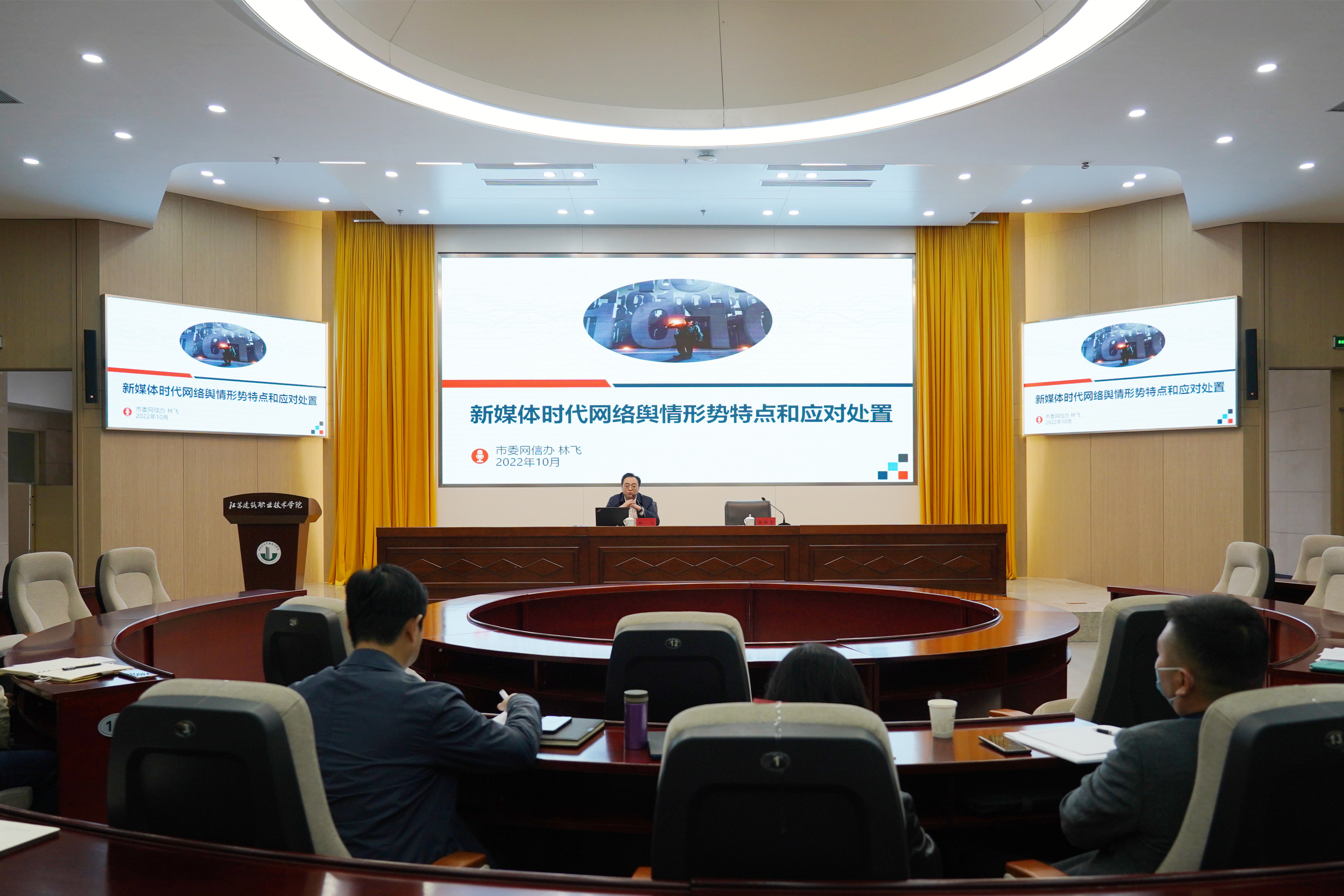 会议结束后,徐州市委网信办网络中心主任林飞针对近期徐州市教育领域网络舆情形势,作了题为“新媒体时代网络舆情形势特点和应对处置”的专题讲座。