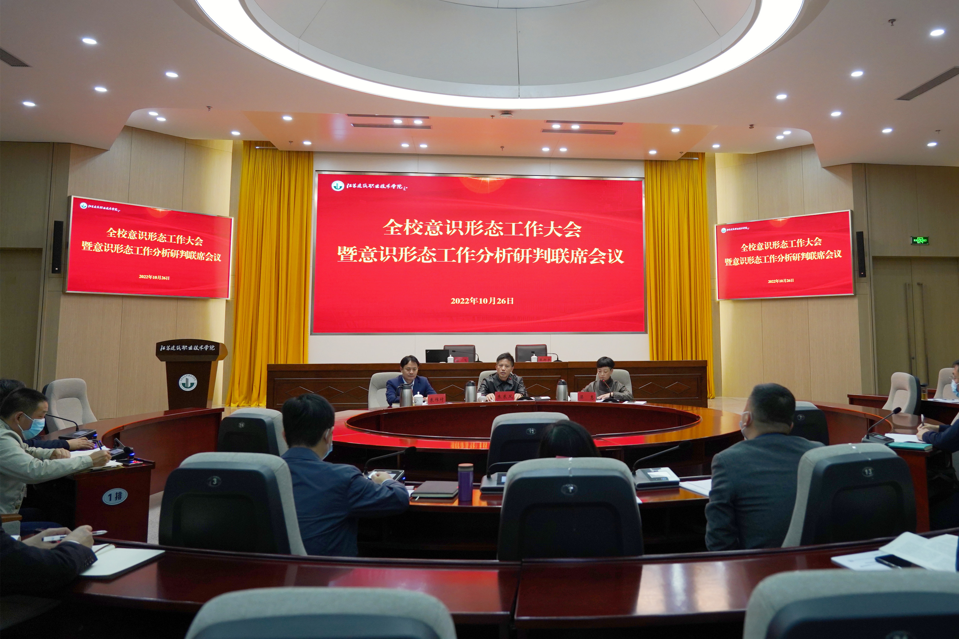 10月26日下午,我校在学术报告厅召开意识形态工作大会暨第三季度意识形态工作分析研判联席(扩大)会议。党委书记朱东风、党委副书记梁惠、纪委书记朱作付,校意识形态工作联席会成员,各党总支(直属党支部)书记、副书记,全体专职辅导员和班主任参加会议。