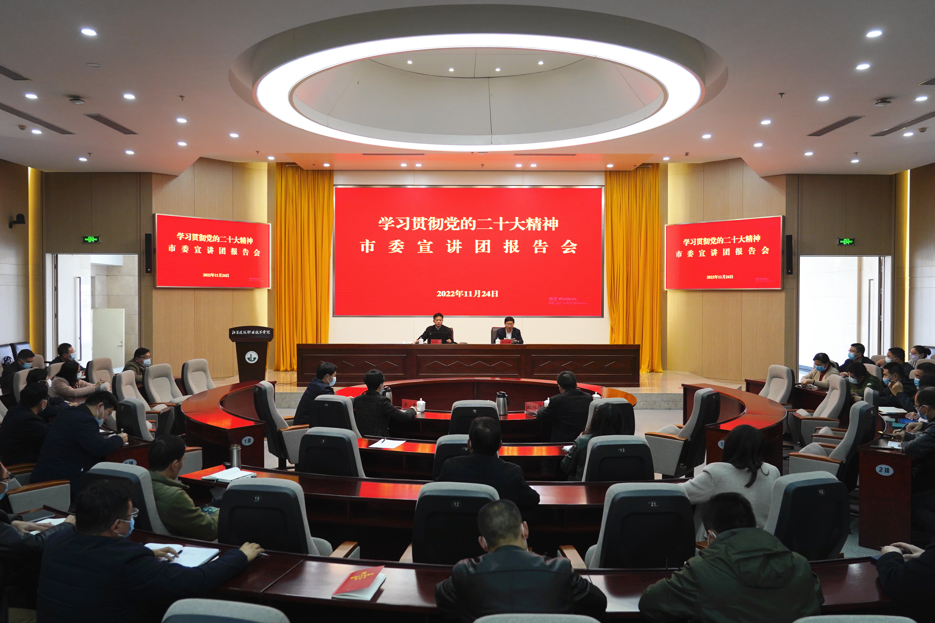 11月24日下午,我校学习贯彻党的二十大精神宣讲报告会在学术报告厅举行。市委宣讲团成员、学校党委书记朱东风就如何学习贯彻党的二十大精神,争创全国一流智能建造特色鲜明的职业本科院校,向参会师生作宣讲报告。校长沈士德主持报告会。