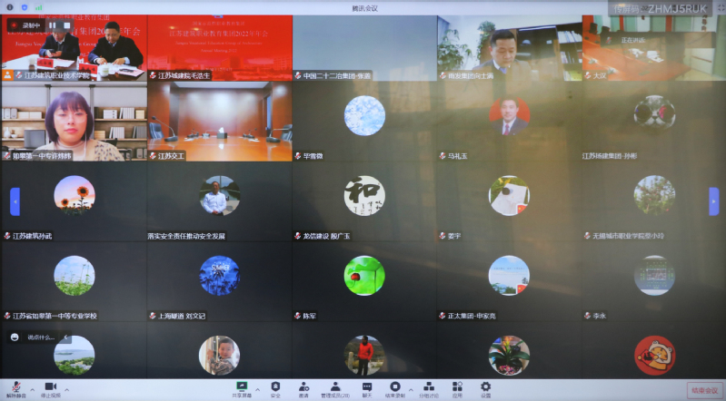 为贯彻高职教育新发展理念,总结职教集团工作经验,提高职教集团服务地方发展能力,12月4日上午,我校牵头召开江苏建筑职教集团2022年线上年会,校内线下会场设在行政楼第一会议室。校长、江苏省建设职业教育行业指导委员会副主任委员兼秘书长沈士德,副校长、江苏建筑职教集团新一届理事长蒋兆峰,校内各相关单位负责人线下会场出席年会,学校各相关专业教师代表、百余名成员单位负责人线上参会。