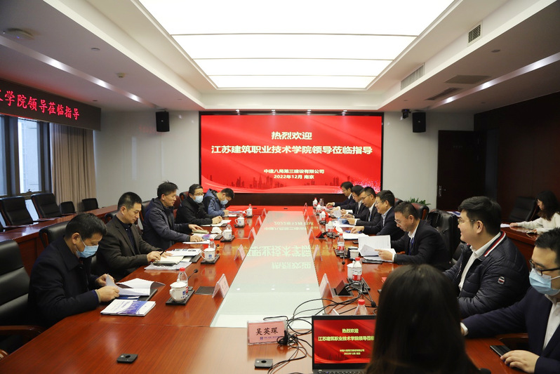 12月5日,党委书记朱东风带队先后来到中建八局第三建设有限公司、江苏省建设教育协会办公驻地,调研洽谈校企深度融合相关事宜。教务处、科技处、建筑建造学院、艺术设计学院等单位负责人参加调研。