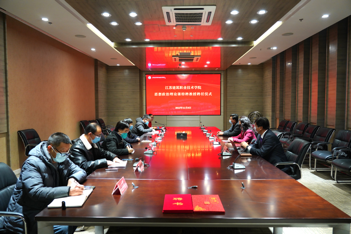 宣讲开始前,学校在图书馆第二会议室举行了思想政治理论课特聘教授聘任仪式。梁惠向夏伯党、王行辉颁发了特聘教授证书。建筑建造学院聘请两位劳模担任学生成长成才导师。