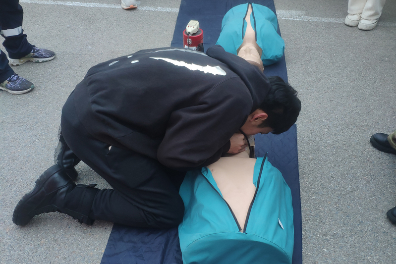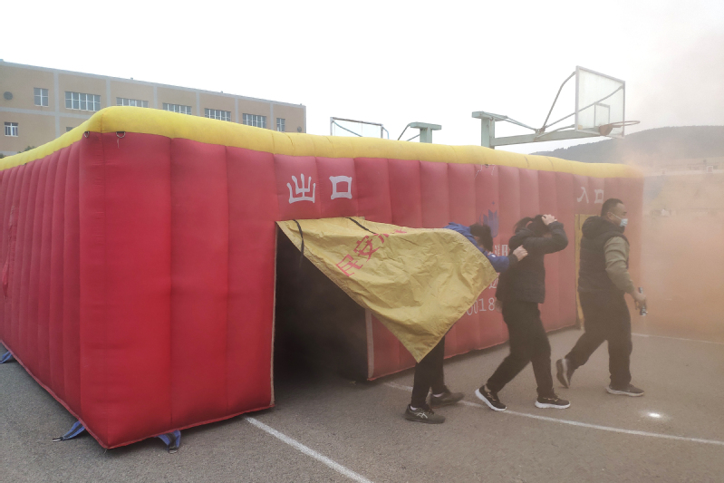 竞赛共包含“逃生屋竞赛”和“灭火接力竞赛”两个项目。每个项目均设置了学生男子组、学生女子组、教工组三个组别。参赛人员斗志昂扬,竞赛过程紧张有序。比赛结束后,全体参赛人员在专业消防培训机构的指导下,现场学习打消防绳结方法以及心肺复苏术。