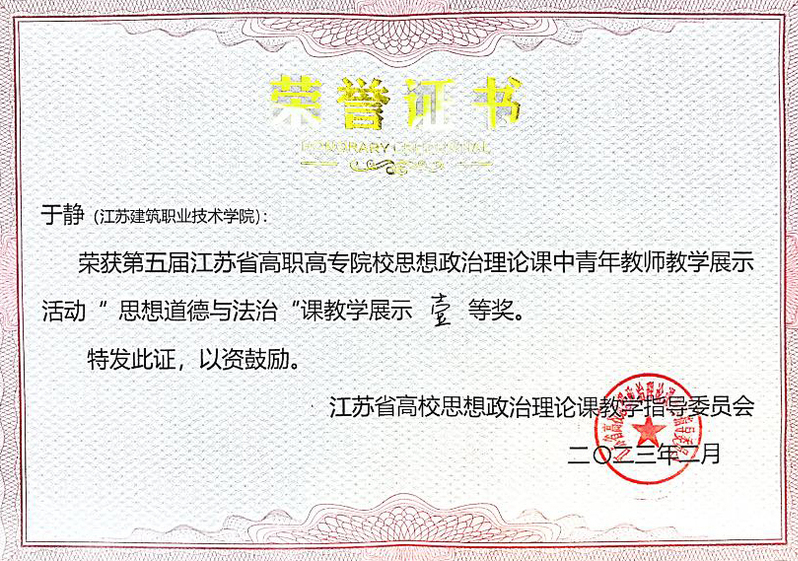 2月12日,第二届全省高校思政课教学展示遴选暨第五届江苏省高职高专院校思想政治理论课中青年教师教学展示活动决赛在连云港师范高等专科学校举行。经过角逐,我校马克思主义学院教师于静获“思想道德与法治”课教学展示一等奖,耿德平获“习近平新时代中国特色社会主义思想概论”课教学展示二等奖。