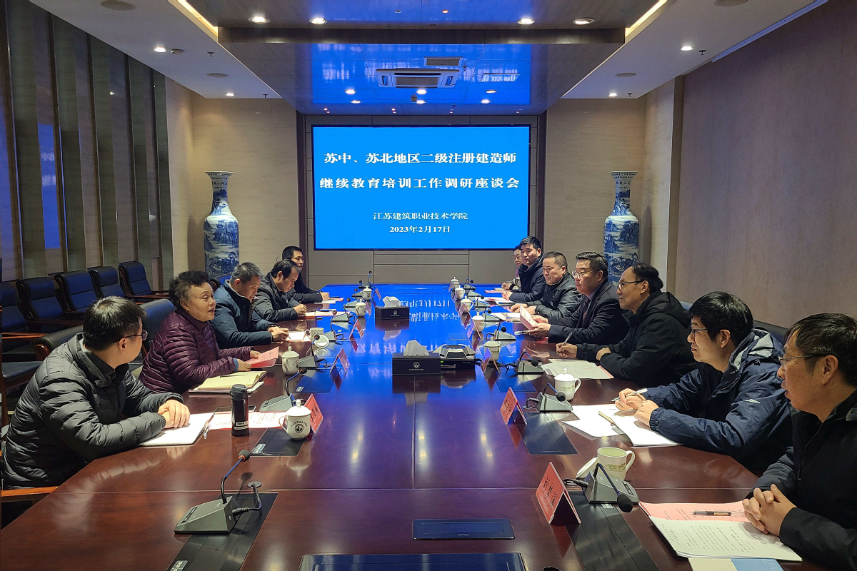 2月17日上午,苏中、苏北地区(徐州)二级注册建造师继续教育培训工作调研座谈会在我校召开。江苏省住房和城乡建设厅建筑市场监管处二级调研员房福亮,江苏省建设教育协会理事长丁舜祥、副秘书长成宁,徐州工程学院、宿迁市广播电视大学等院校代表,我校副校长刘海波、各相关单位负责人及教师代表等参加座谈。