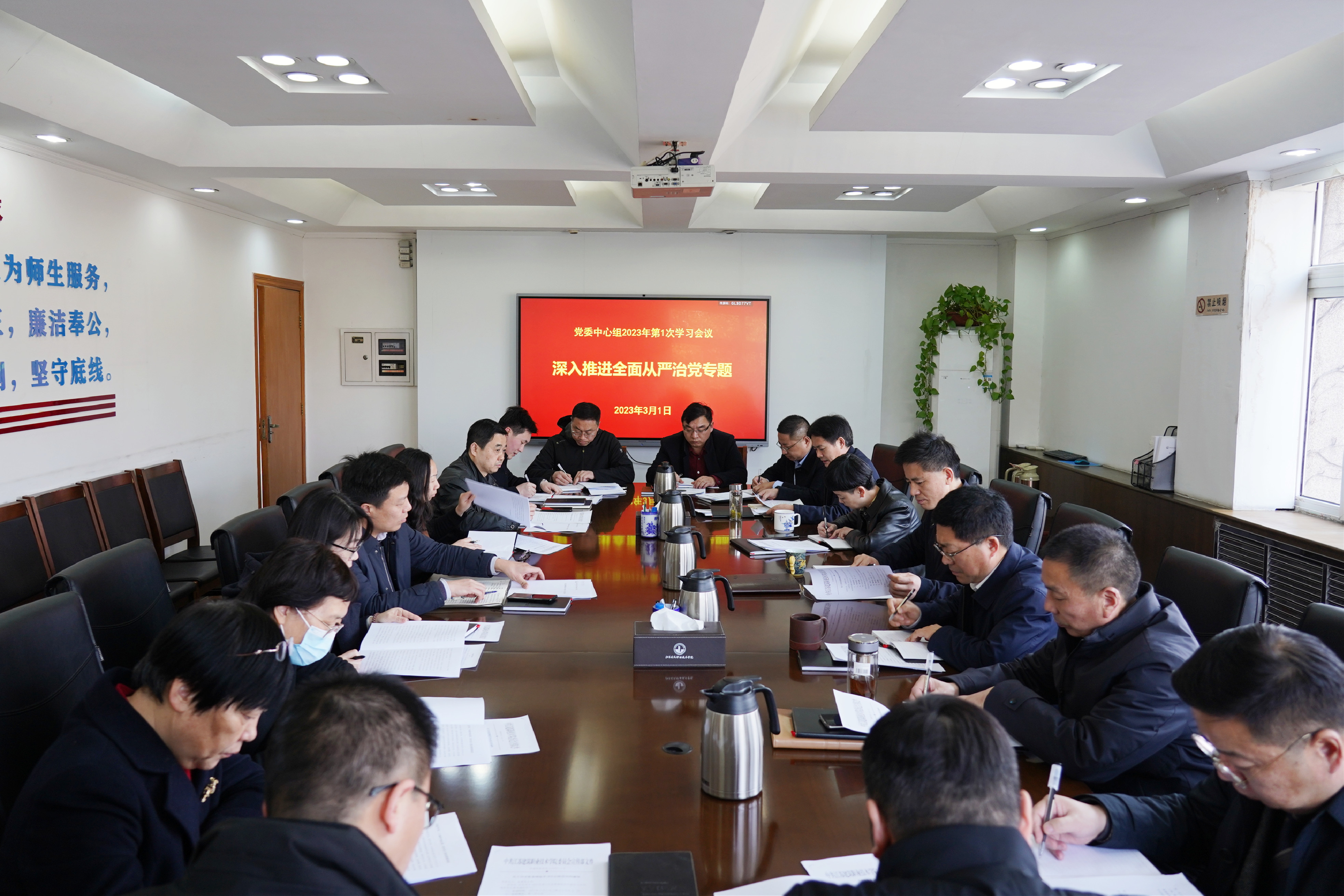 3月2日下午,学校党委理论学习中心组在行政楼第一会议室召开2023年第1次学习会议,专题学习贯彻中国共产党第二十届中央纪律检查委员会第二次全体会议精神和习近平总书记关于全面从严治党的重要论述。党委书记朱东风主持会议,校党委理论学习中心组成员参加学习。