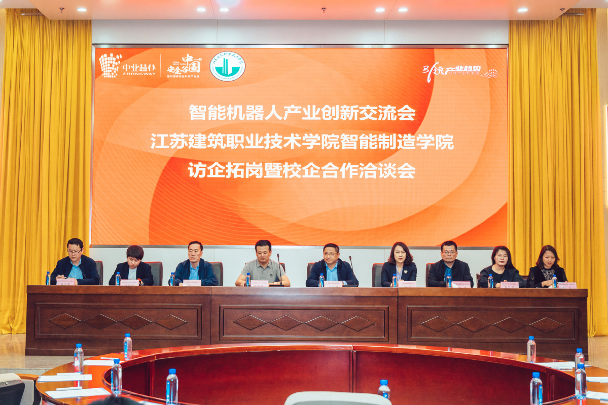 为促进区域智能机器人产业发展,进一步深化校企合作、拓展就业渠道,3月10日下午,学校联合徐州高新区中国安全谷园区在学术报告厅组织开展智能机器人产业创新交流会。副校长蒋兆峰,招生与就业处、校企合作处、智能制造学院等单位负责人,高新区安科园管委会、中业慧谷城市公司代表以及中国安全谷园区40余家企业负责人参加交流会。