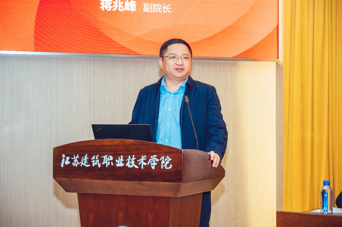 蒋兆峰代表学校致欢迎辞,简要介绍了学校的办学历史、专业特色以及智能机器人专业发展情况,并重点阐述了学校开展校企合作、产教融合、社会服务、智能产业园建设等工作的具体思路。