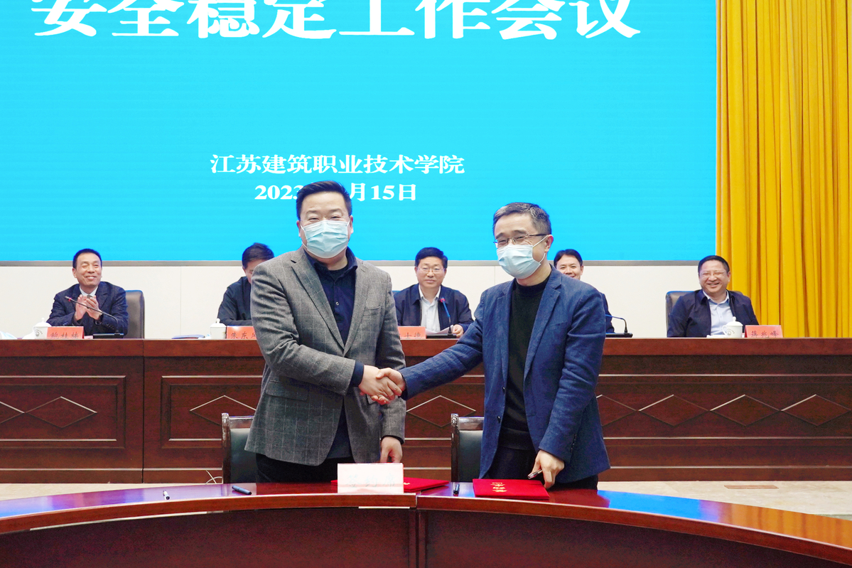 朱作付宣读了《关于表彰校园安全员先进个人的决定》。刘海波、蒋兆峰与二级部门代表签订了《2023年安全工作稳定责任书》。