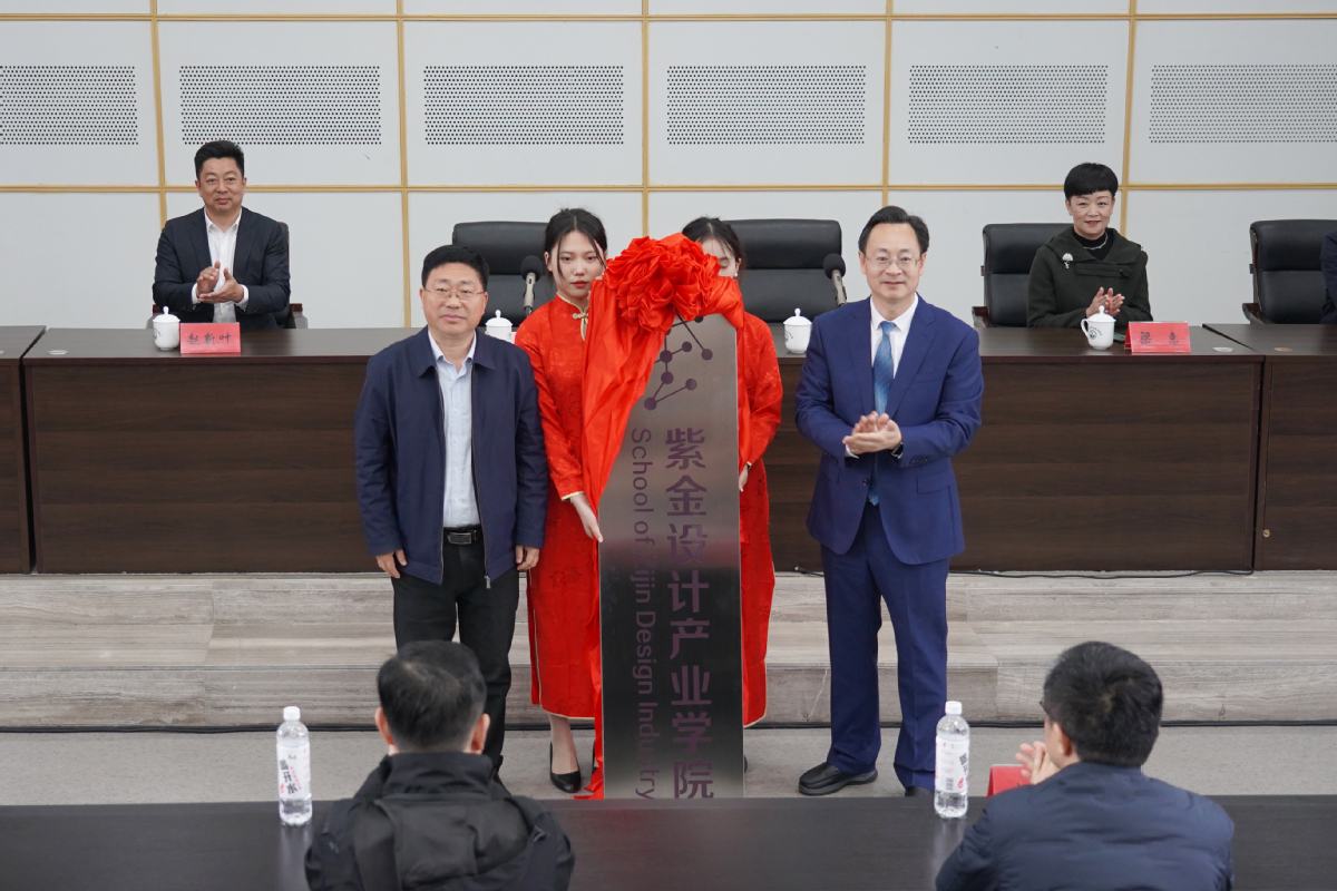 3月21日上午,我校在图书馆报告厅举行紫金设计产业学院揭牌仪式。我校校长沈士德、党委副书记梁惠、副校长蒋兆峰,江苏省文投集团副总经理王国丰,江苏紫金文创产业发展有限公司总经理赵新叶、副总经理李少华,各企业方相关领导、校内各相关职能部门负责人、艺术设计学院党政领导班子、部分教师代表及学生代表出席仪式。仪式由蒋兆峰主持。