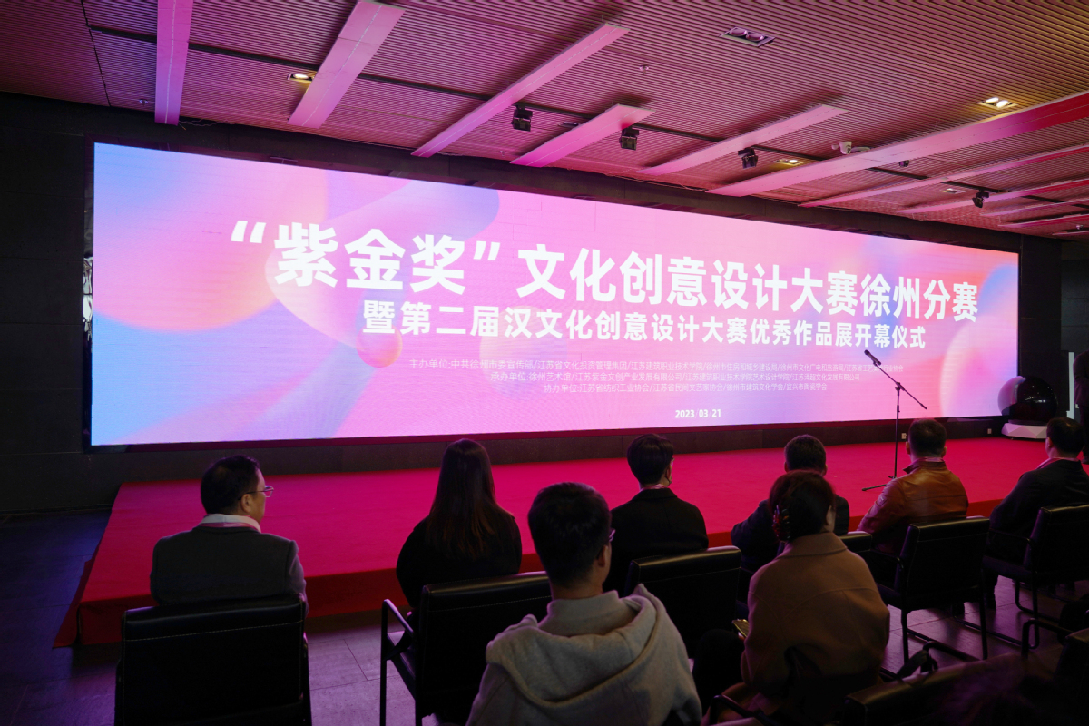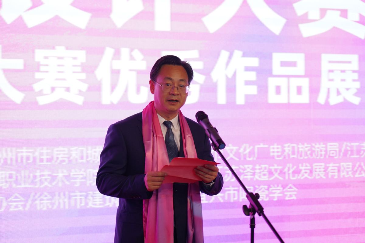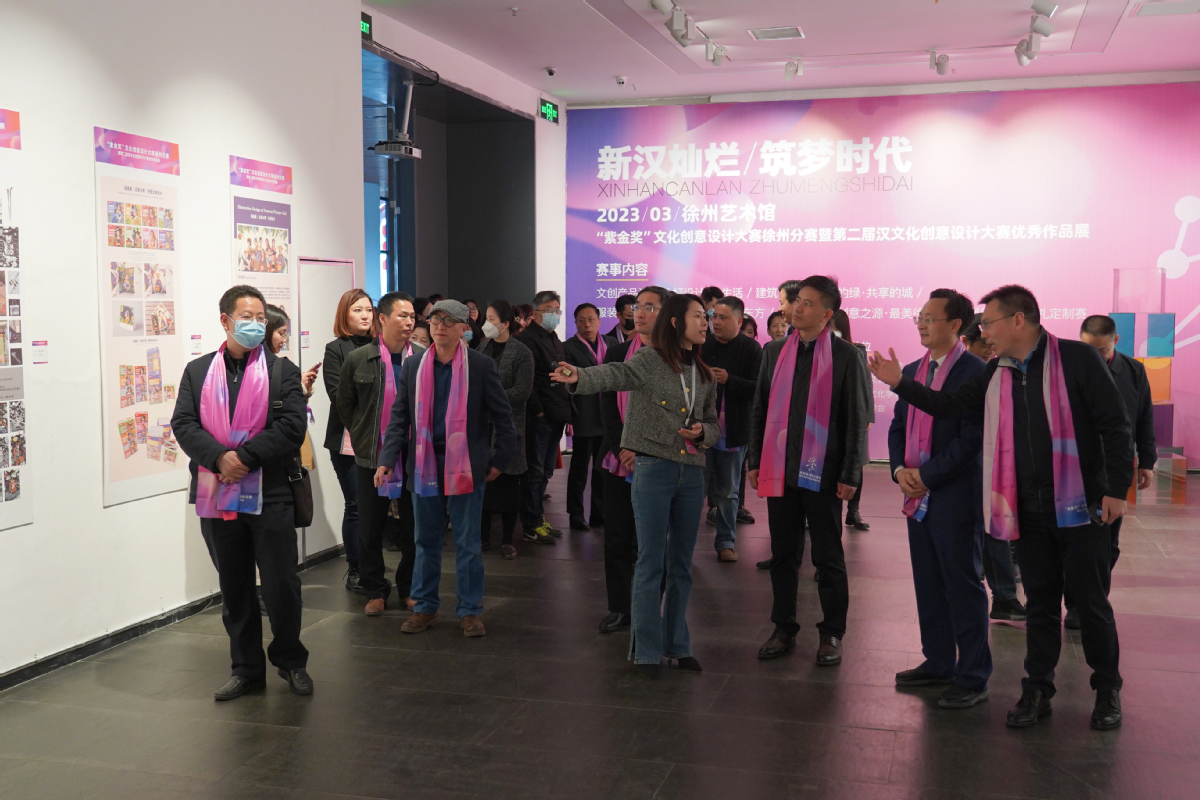 3月21日下午,由我校及市委宣传部、省文化投资管理集团、市住建局、市文广旅局、省工美协会联合主办的“紫金奖”文化创意设计大赛徐州分赛暨第二届汉文化创意设计大赛优秀作品展在徐州美术馆开幕。我校党委书记朱东风、副校长刘海波,江苏文化投资管理集团副总经理王国丰,徐州市住房和城乡建设局四级调研员王立东,徐州市文广旅局四级调研员苏北,徐州市委宣传部文化产业处处长西家鹏,徐州市美术家协会主席高洪啸,江苏紫金文创产业发展有限公司副总经理李少华,各兄弟院校教师代表,各校内相关单位负责人及参赛师生代表参加活动开幕式。开幕式由刘海波主持。