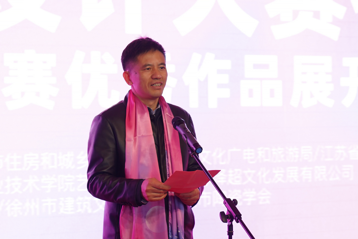 王国丰代表主办单位致辞。他详细解读了本次活动“新汉灿烂,筑梦时代”的主题,并分模块介绍了本次展览的作品特点。他表示,本次展览彰显了徐州创意设计的新标高,将为徐州乃至全国的创意设计水平的提升产生促进作用。