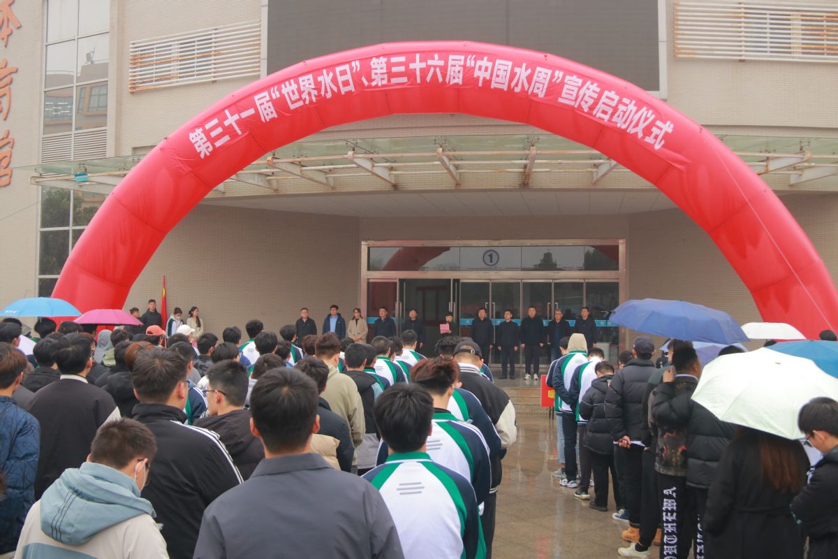 3月22日下午,学校联合徐州市铜山区水务局在体育馆东门广场举办2023年“世界水日”“中国水周”宣传活动启动仪式,校党委副书记梁惠,铜山区政府办公室主任刘培培、铜山区水务局副局长李令海、王振,校地各相关单位负责人以及500余名师生代表参加仪式。
