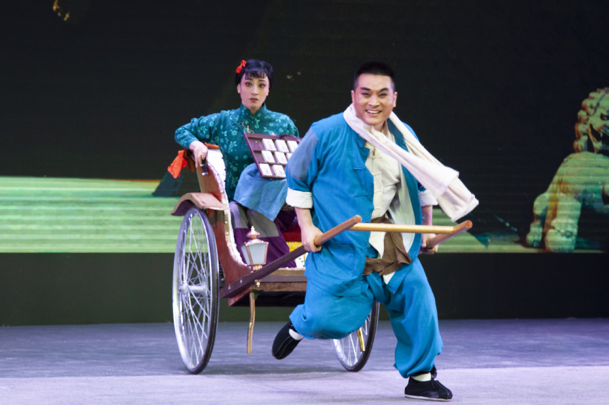 本次专场演出剧目改编自人民艺术家老舍先生的第一部长篇小说《骆驼祥子》,以人力车夫祥子的一生为主线,侧面影射上世纪二十年代社会底层民众的悲惨生活。在正式演出前,活动主办方还设置了导赏环节,让学生亲身体验“祥子拉车”,以此帮助同学们尽快沉浸在剧情之中。