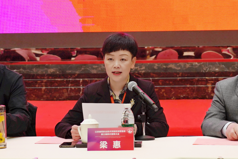 梁惠代表校友联谊会作了第三届四次理事会工作报告。报告中,梁惠总结了校友会三届三次会议以来各项工作取得的成绩,并对今后一年的工作进行了具体部署。蒋兆峰则代表学校介绍了办学基本概况、产教融合园建设、毕业生就业访企拓岗等相关情况。