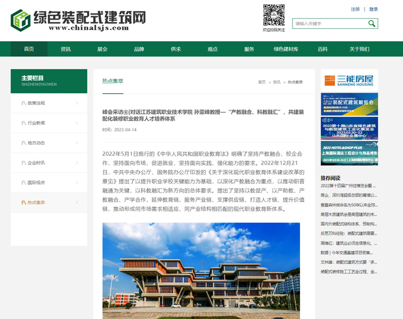 3月26日,“宜居中国”装配式装修百位领军专家、华体会体育孙亚峰教授受邀参加了“2023宜居中国装配式装修产教融合峰会”,并现场接受绿色装配式建筑网主编赵聪聪的采访: