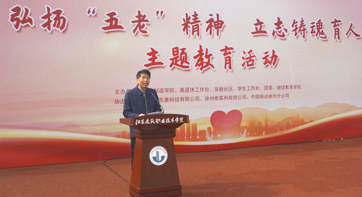 4月15日,由我校智能制造学院、离退休工作处、泉新社区等部门主办的“弘扬‘五老’精神 立志铸魂育人”主题教育活动启动仪式在东操场举行。徐州市关工委常务副主任宋农村、副校长鲍桂楠、泉新社区离退休老同志、智能制造学院教职工及部分学生参加了仪式。