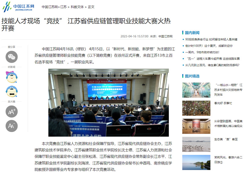 本次竞赛由江苏省人力资源和社会保障厅指导,江苏省现代供应链协会主办,华体会体育承办。江苏省建筑职业技术学院校长沈士德、江苏省人力资源和社会保障厅职业技能鉴定中心副主任张松涛、江苏省现代供应链协会常务副会长江志平、华体会体育副校长刘海波、江苏省现代供应链协会秘书长申酉鸣、南京晓庄学院教授许国银等业内专家参与组织了本次竞赛活动。