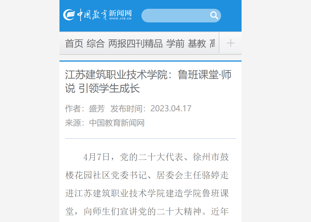 4月7日,党的二十大代表、徐州市鼓楼花园社区党委书记、居委会主任骆婷走进华体会体育建造学院鲁班课堂,向师生们宣讲党的二十大精神。近年来,建造学院紧紧围绕立德树人根本任务,依托鲁班课堂扩大育人阵地,邀请聘请劳动模范、大师工匠担任学生成长成才导师,走进课堂、走进学生,用优秀人物成长故事激励引导青年学生,点亮青年学子心中的劳模梦、匠心梦,推进学生思想政治工作走深走实。