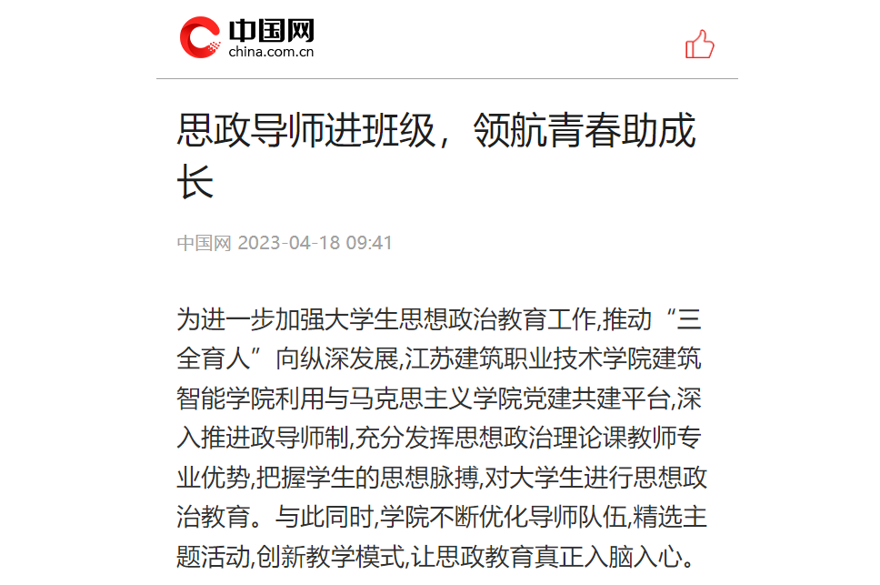 学院建立了思政导师统一协调、教育资源共享的大学生思政教育工作体系,学生学习教育成效显著提升。下一步,学院将优化思政导师队伍,进一步完善导师管理,不断创新教育模式,协同联动任课教师、班主任教育管理,逐步形成全员、全过程、全方位育人的“大思政”育人工作新格局。