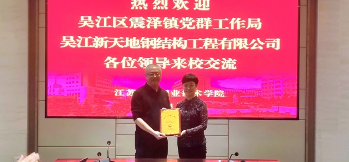 4月20日,苏州市吴江区震泽镇党群工作局屠庆芳主任、吴江新天地钢结构工程有限公司董事长董建华一行5人莅临我校,开展校地企对接,推进校地企合作。校党委副书记梁惠,招生就业处、校企合作处、建筑建造学院等相关部门负责人参加座谈。
