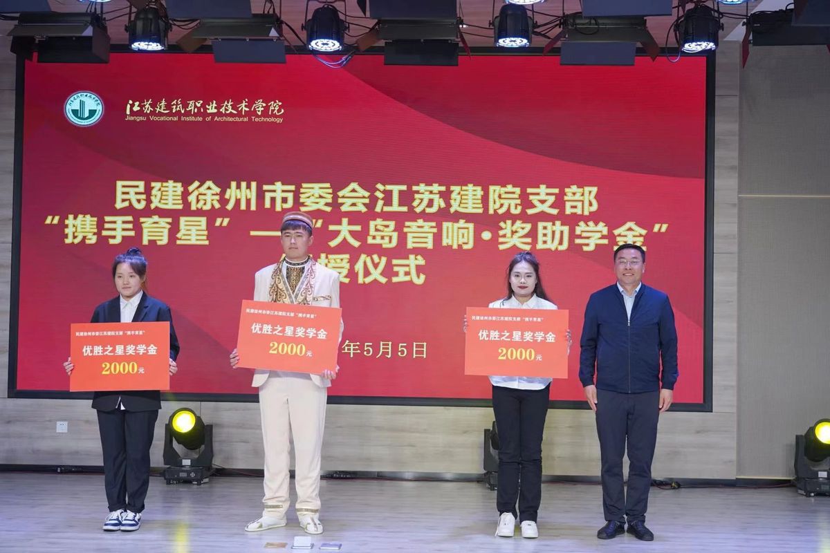 民建江苏省委副主委、徐州市人民政府副市长、民建徐州市委会主委林斌,民建徐州市委会专职副主委王奉君,民建徐州市委会社会服务委员会主任张静,院长沈士德,党委副书记梁惠,各相关单位负责人,民建教师代表,“携手育星”奖助学金获奖学生以及少数民族学生代表参加本次颁授仪式。