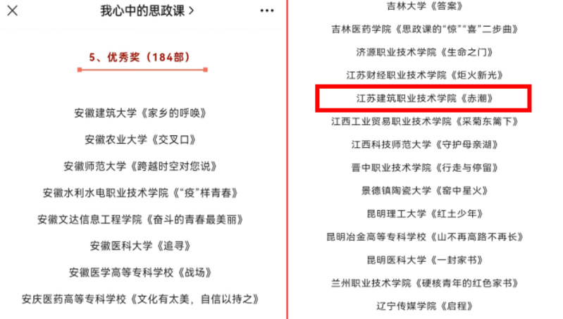据悉,此次比赛包括初赛推荐、省赛遴选、复审终审等环节,江苏省获奖作品共10项,其中,江苏省高职院校获奖作品3项,我校是徐州高职院校唯一一所获奖参赛单位。